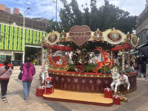 The URA’s Flower Market Christmas Festive Event runs from 13 Dec 2024 until 5 January 2025. The URA and the Yau Tsim Mong District Office have jointly adorned the Flower Market with festive decorations, including dazzling lights on sections of Sai Yee Street and Flower Market Road and a large carousel-themed Christmas installation set up in the pedestrian space at the intersection of Sai Yee Street and Flower Market Road. Snowflake images will also be projected onto the base of the Prince Edward Road West Flyover. These distinctive decorations create excellent photo spots for locals and tourists.